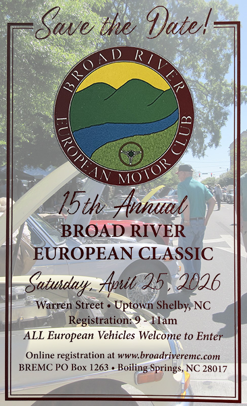It was the fall of 2008 and the air was beginning to chill here in Shelby, North Carolina. The days of wind in your hair were coming to an end as convertible tops and side curtains went on. It was about this time that a small group came together to discuss the possibility of an organized club. Over the next couple of months a list was made of those who may have an interest in European automobiles. Surprisingly, the list grew beyond our wildest expectations and the decision was made to call a meeting to see just how serious people really were. Everyone on the list showed up!